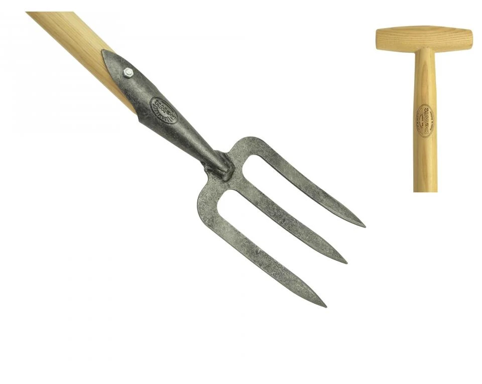 Onmisbaar in moes- en bloementuin. Een greep is ideaal voor het oogsten van je groenten zoals aardappelen. In de bloementuin gebruik je het voor het delen van de vaste planten en het verwijderen van je eenjarigen. Dit vorkje is voorzien van een 80cm essen T-steel waarmee je staand de klus kunt uitvoeren.
