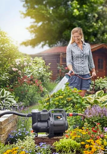 De compacte Gardena hydrofoorpomp Classic 3500/4E met een nominaal vermogen van 800 W, een maximale doorvoercapaciteit van 3.500 l/h en een max. druk van 4,0 bar is bij uitstek geschikt voor mobiel en stationair gebruik – waar u maar wilt.