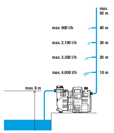 - Max. zelfaanzuighoogte: 8 m