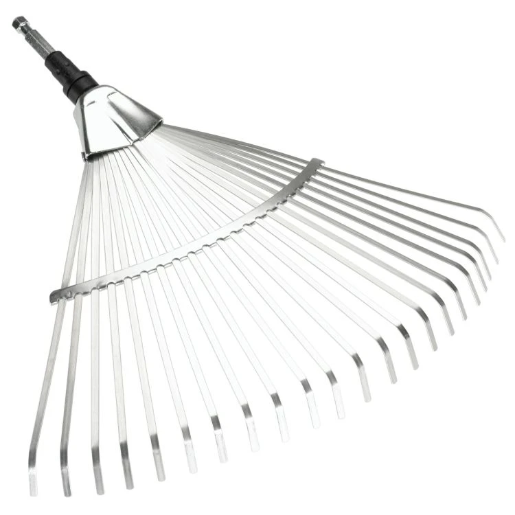 Veerkrachtige, gegalvaniseerde verenstalen tanden. Bijeenharken van blad, gras en ander tuinafval.