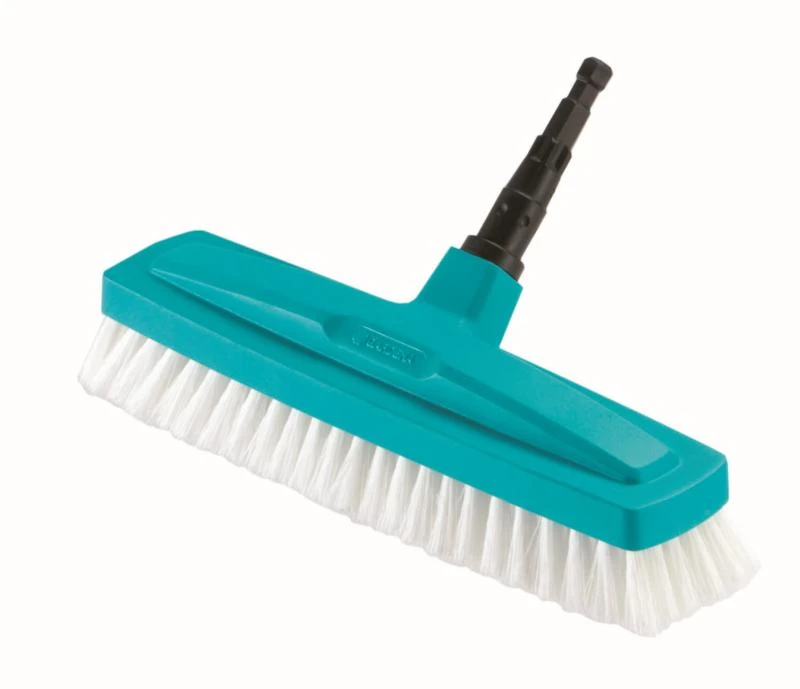 Hoogwaardig blauw kunststof blok met aansluiting voor Gardena combisystem-stelen. Vulling van hoogelastische, licht-golvende polypropyleen borstels voor een uitstekende reinigingswerking. Zonder steel. Advieslengte steel 130 of 150 cm.