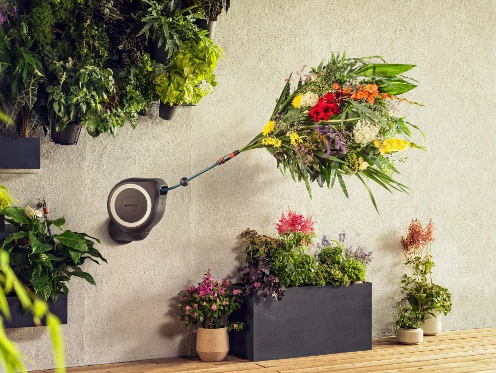 Bewatering die altijd gebruiksklaar is , dankzij de GARDENA wandslangenbox RollUp S.