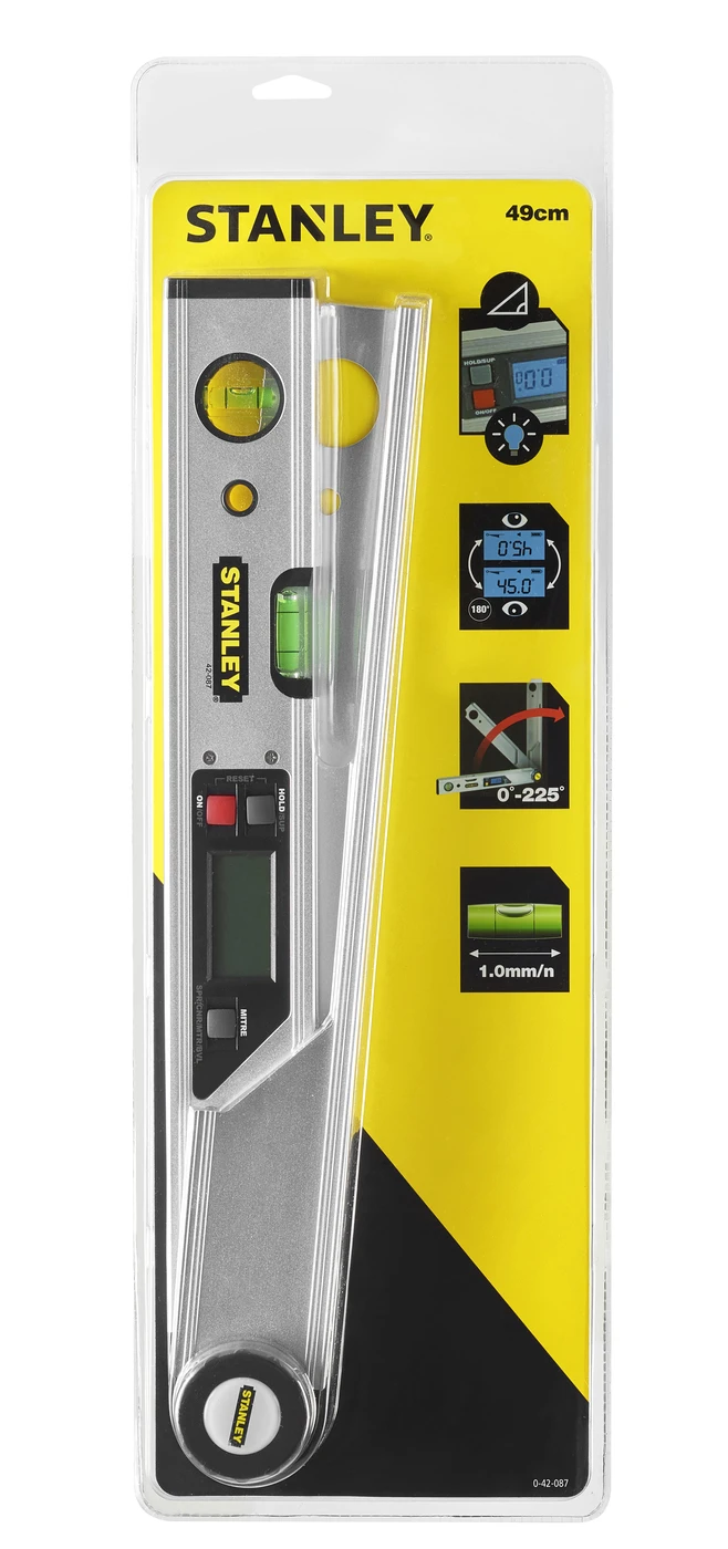 Deze digitale zweihaak van Stanley heeft een verlicht LCD scherm, zodat je een zeer preciese meting kan krijgen en dat je dit kan opslaan met de HOLD functie.