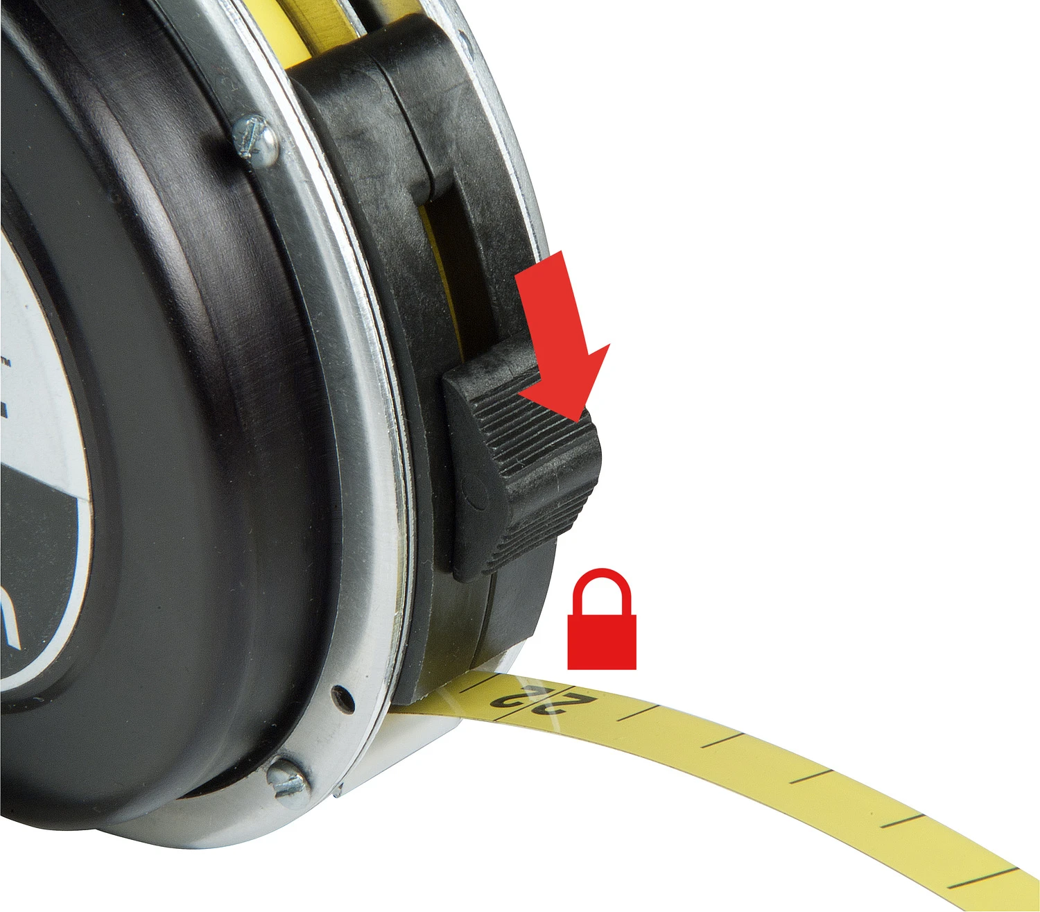 Wordt geleverd met bladvergrendeling en een robuste carabijnhaak waardoor je gemakkelijk kunt bandmeten. Met automatisch oprolmechanisme wat het bandterugloop vergemakkelijkt.