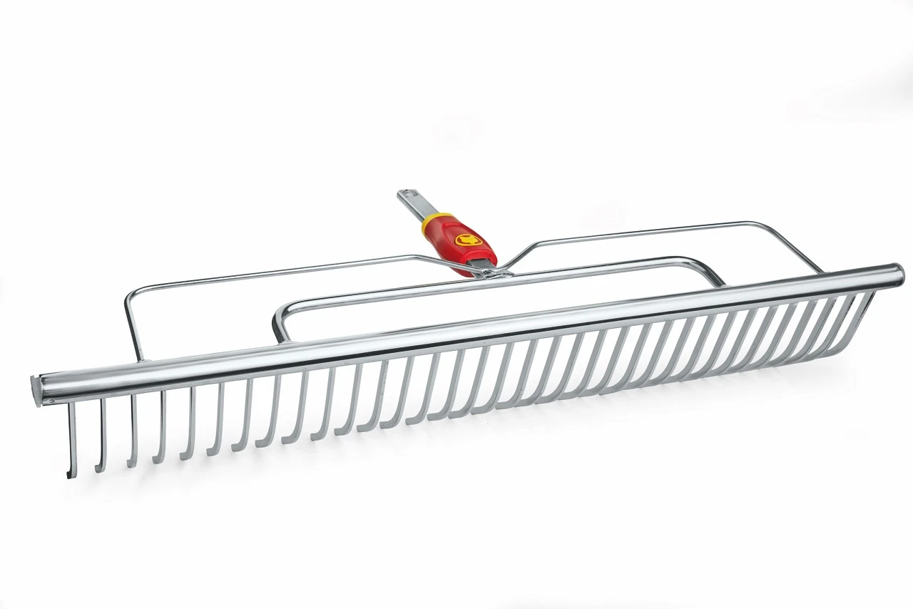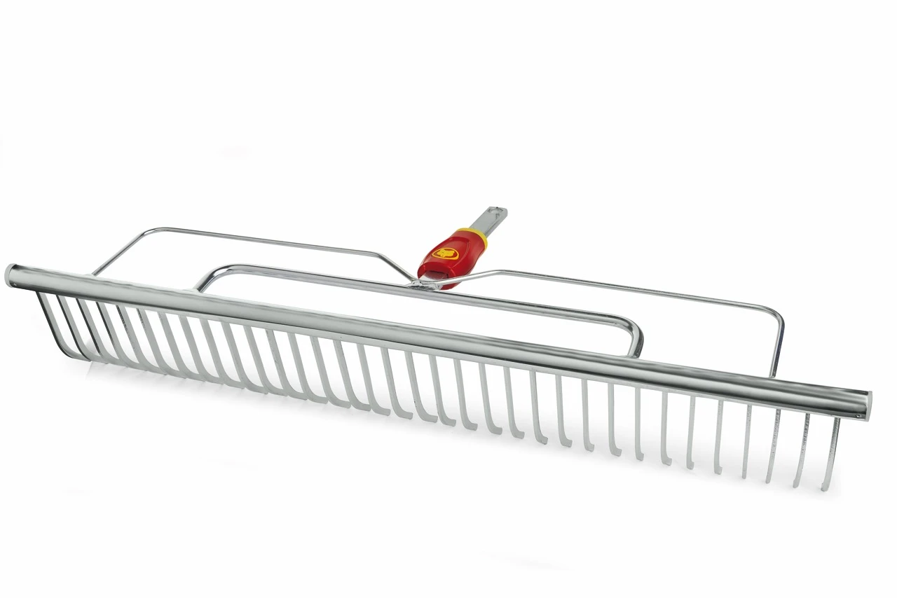 De gazonhark UH-M 60 van Wolf-Garten is voor het aanharken en egaliseren van borders en grindpaadjes. Het is gemaakt van 3-voudig verzinkt staal waardoor de beugelhark bijzonder slijtvast en roestvast is. De werkbreedte van de beugelhark is 58 cm en wordt geleverd zonder steel. De Wolf Garten gazonhark is met name erg geschikt in combinatie met de multi-star aluminium of essenhouten steel. Afhankelijk van uw lengte worden de volgende stelen aangeraden voor het voorkomen van rugproblemen.