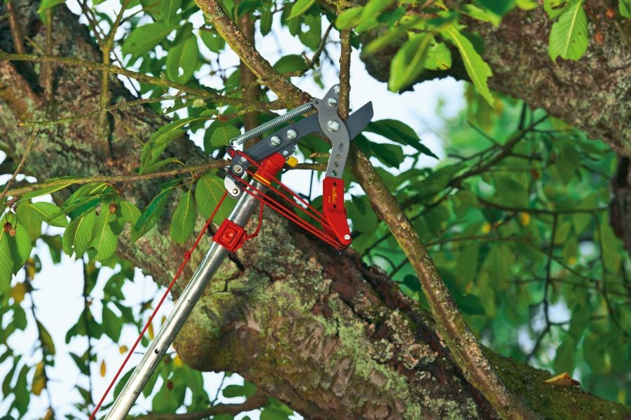 Deze snoeischaar van Wolf is speciaal voor het snoeien van bomen. Met deze schaar is het mogelijk om hooggelegen takken te snoeien zonder gebruik van een ladder. De Multi-star vario-steel maakt het mogelijk om tot een hoogte van 5.5 meter te snoeien. Dankzij het katrol mechanisme heeft u weinig krachtsinspanning nodig voor het knippen van de takken. U kunt takken snijden tot een diameter van 40 mm. Het aambeeld met anti-kleeflaag snijdt snel en eenvoudig, daarbij blijven de messen lang zuiver.