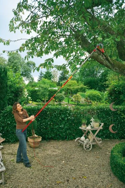 - Met de variosteel veilig snoeien tot maximaal 5.5 m: geen ladder nodig.